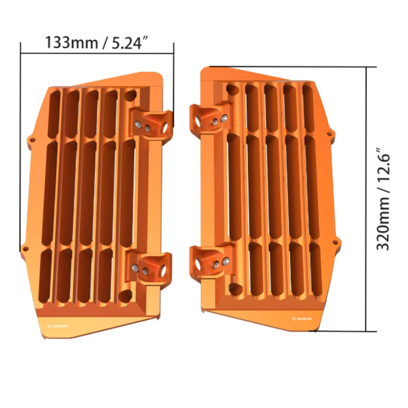— Aumenta significativamente a eficiência, a resistência e o fluxo de ar em até 25% em comparação com outros protetores de radiador de liga de alumínio para KTM disponíveis no mercado.